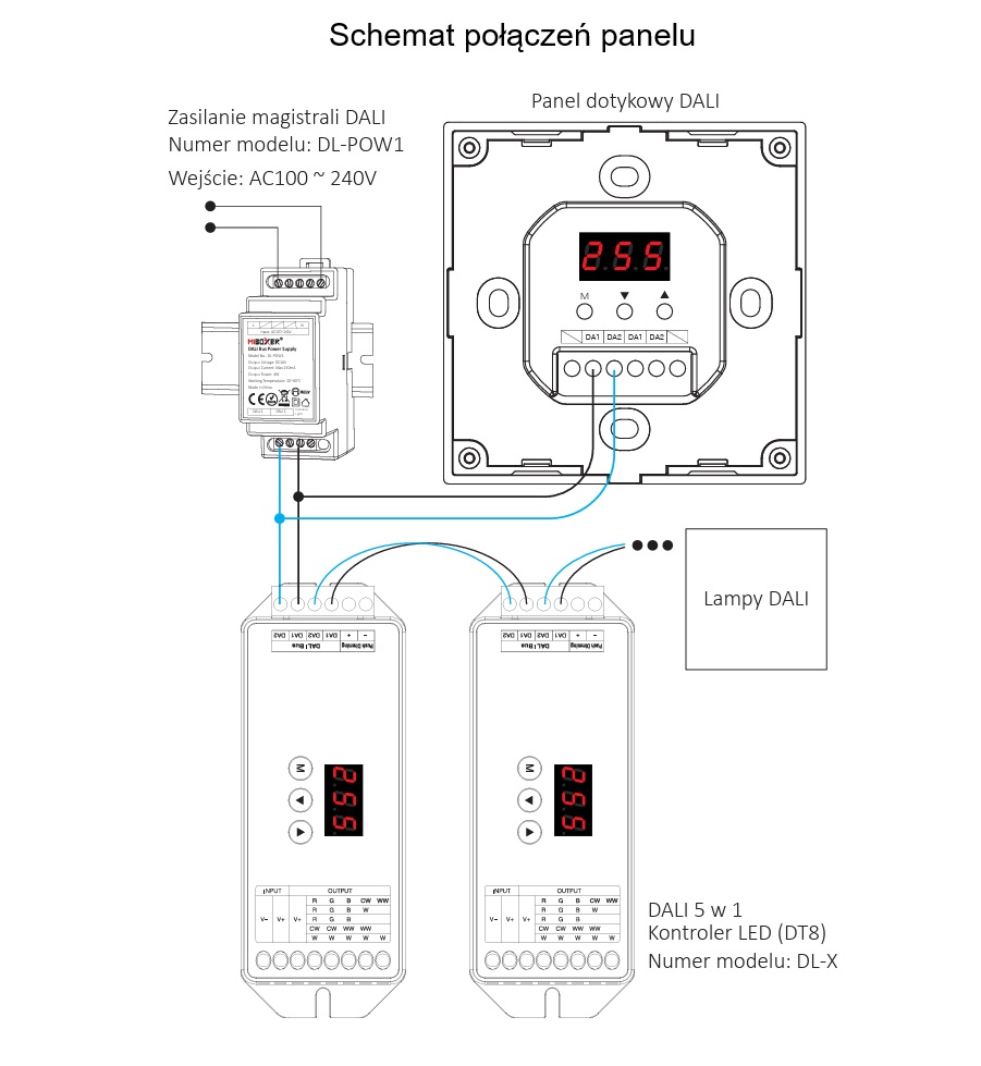 • Obsługa standardowego protokołu DALI IEC62386-102, 207, 209
