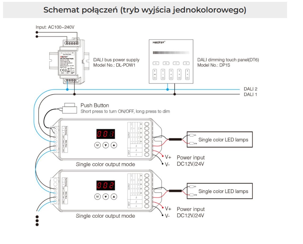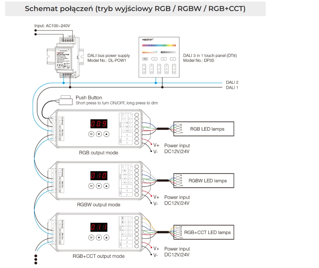 | Zastosowanie | do instalacji Mono CCT RGB RGB+W RGB+CCT |