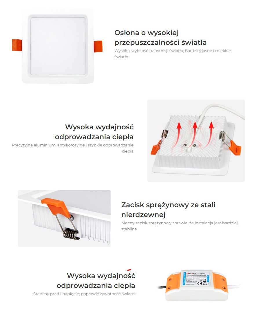 Panel sufitowy MiLight pozwoli na oświetlenie wybranych pomieszczeń w Twoim domu! To gwarancja najwyższej jakości! Kwadratowy panel FUT064 może wygenerować 16 milionów kolorów oraz barwę białą w zakresie temperatury 2700 – 6500K, czyli w przedziale od ciepłej po zimną biel. Istnieje również możliwość zmiany nasycenia dowolnego koloru z palety RGB poprzez dodanie światła białego.